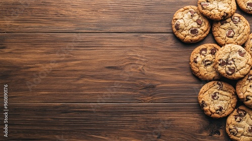 background, food, wooden, baking, copy, pattern, tasty, bakery, table, treat, crispy, overhead, epicure, chocolate, chips, dessert, teeth, rustic, space, flat, pastry, top, wood grain, snack, delicious, cookie, confectionery, lay, texture, view, chewy, sweet, homemade, fresh, brown