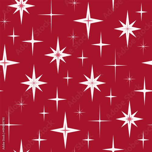 Christmas and New Year Holidays seamless pattern. Vector illustration with stars. Vintage background, print for wrapping paper, fabric, stationery, wallpaper
