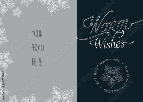Christmas, Holiday Photo Card Template with Snowflakes - Vector