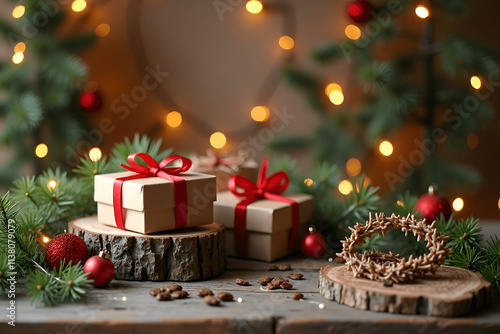 christmas, gift, tree, decoration, box, holiday, christmas, present, celebration, ribbon, ornament, bow, winter, tree branch, christmas tree, ball, season, year, new, green, red, gold, pine, gold, card