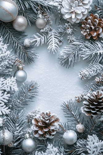 Christmas Wreath with Pine Cones and Ornaments