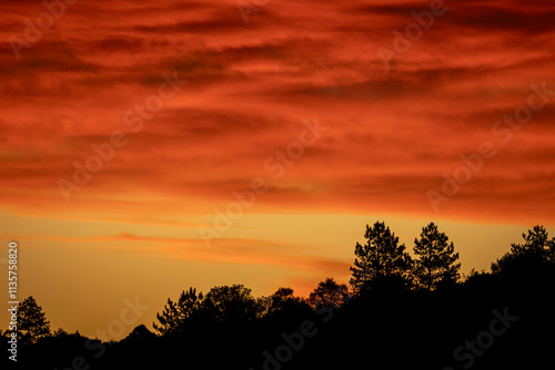 sunset, heaven, sun, cloud, landscape, nature, dusk, evening, orange, sunrise, beauty, red, horizon, forest