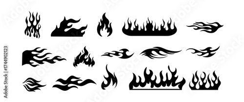 Classic Flame Silhouettes – Retro Hot Rod Motorcycle Fire Tattoo Vector Outline Design
