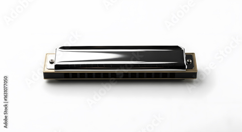 Classic harmonica on clean white background