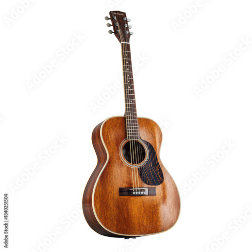 Classic wooden acoustic guitar, warm tone, musical instrument, studio shot. isolated on transparent background