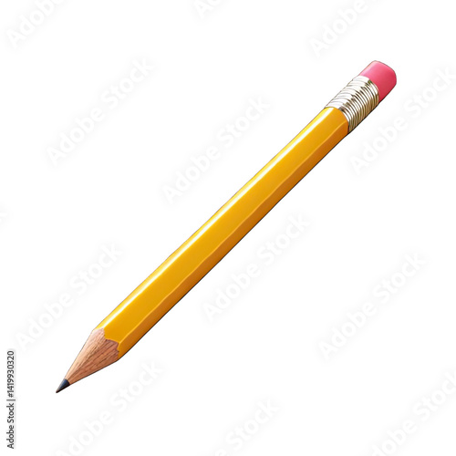 Classic Yellow Pencil with Eraser – Isolated School and Office Supply on Transparent Background