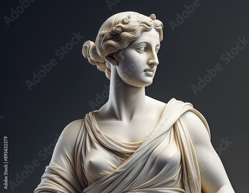 Classical antique sculpture of a woman in marble or white stone. Ancient greek art and culture, human statue
