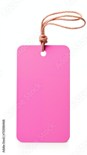 Clean Design: Pink Price Tag with Hemp String on White Background