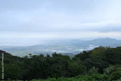 mountain, japan, scenic, building, space, climb, cloud, beautiful, trail, view, plain, sunny, climbing, sky, sightseeing, natural, tree, shrine, field, background, spot, fog, blue skies, kanto, trekking, tour tourism, scenery, summer, agriculture, holiday maker, walking, vacation, copy, power, leisure, green, nature, countryside, asia, hiking, hill, horizon, attraction, blue, outdoors, travel