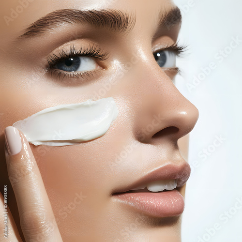 Close up of female model applying face cream