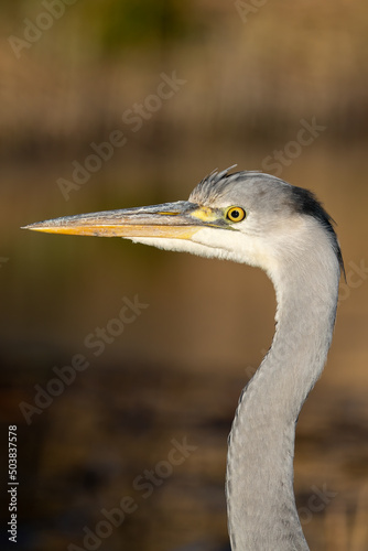 Close up of a juvenile grey heron