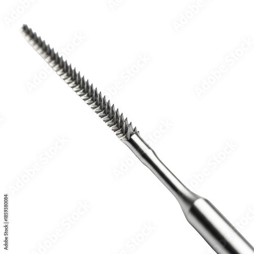 tool, metal, threading, tap, sharp, teeth, industrial, manufacturing, engineering, hardware, macro, detail, cutting, machinery, equipment, steel, silver, metallic, precision, workshop, construction, mechanical, object, isolated, background, black, clean, metalworking, bricolage, repair, hardware store