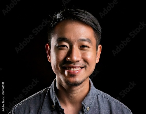young men, man, asian, smiling, happy, emotion, black, dark, black background, closeup, laughing, joy, happiness, human, person, head, face, portrait, expression, life, smile, eye, photogenic, guy, confident, businessman, looking