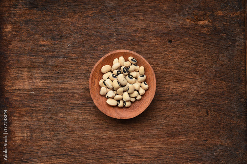 close up of blackeye peas in wooden bowl