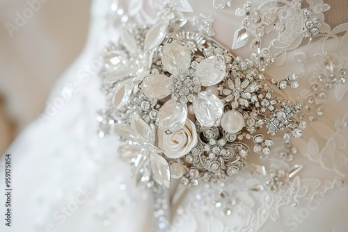 brooch, bouquet, vintage, elegance, jewellery, wedding, floral, design, closeup, craftsmanship, decoration, silver, pearl, rhinestone, crystal, bridal, ornate, detail, accessory, gown, glamourous, chic, hand-made, artistry, pattern, texture, romantic, luxurious, flower, statement, adornment, sophisticated, delicate, event, celebration, fashion, unique, creative, stylish, timeless, keepsake, arrangement, heirloom