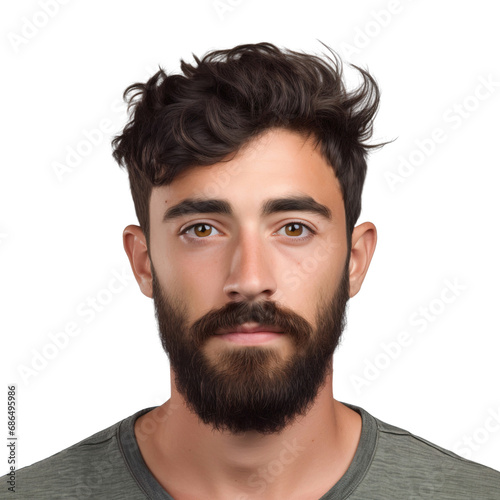 man, male, photogenic, serious, expression, emotion, head shot, closeup, young, portrait, isolated, transparent, white, face, looking, model, closeup, guy, people, person, joy, casual attire, head, beard, facial expression