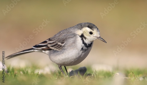 Close up White Wagtail on green grass, Motacilla alba, birds of Montenegro