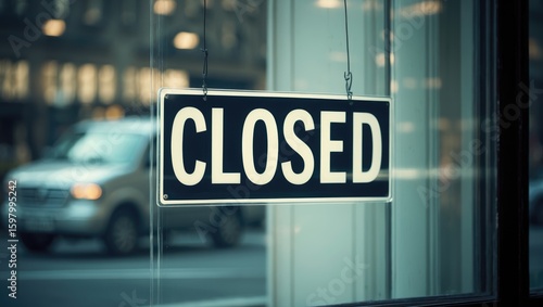 Closed sign on glass door indicating business closure