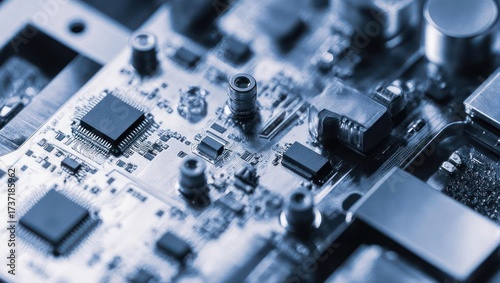 circuit, board, electronic, technology, component, integrated, microchip, transistor, resistor, capacitor, connector, metal, pattern, complex, dense, interconnected, grey, blue, detail, closeup, macro, modern, advanced, high technology, engineering, precise, manufacturing, connection, device, system, innovation, progress, digital, datum, mechanism, electric, power, hardware, science, detail, precision, functionality, circuitry, assembled
