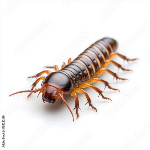 Close-up Image of a Colorful Millipede Crawling on a White Background