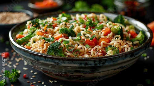 noodle, ramen, broccoli, carrot, vegetable, sesame, seed, green, onion, bowl, food, cookery, asian, japanese, chinese, dinner, lunch, meal, healthy, tasty, delicious, fresh, flavorful, appetising, cooking, receipe, culinary, gastronomy, epicure, ingredient, vegetarian, vegan, diet, nourishment, side, dish, spicey, savoury, homemade, eatery, eat, dining, photo, still, life, close, up, macro