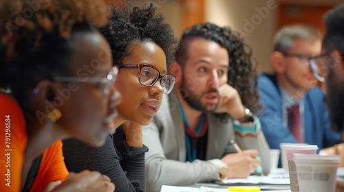 Closeup of a diverse group of individuals brainstorming and collaborating on solutions for climate resilience. .