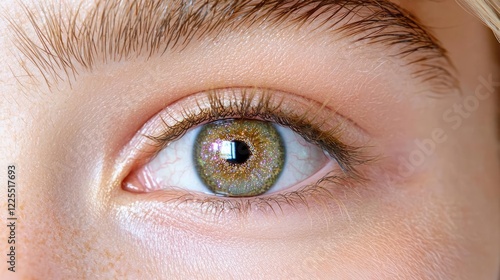 Close-up of a hazel eye, detailed iris, freckled skin, beauty, skincare