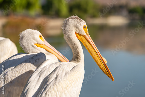 Close-up of a white pelican.