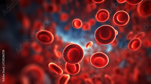 Close-up of blood flow of blood cells, white blood cells, red blood cells