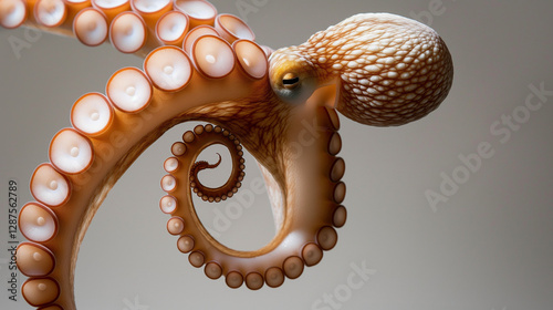 Close-up of curled octopus tentacles on neutral background