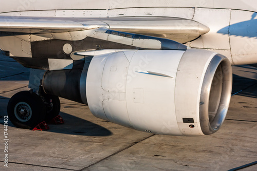engine, turbine, wing, wheel, detail, pneumatic, technology, plane, jet, aeroplane, aircraft, airliner, aviation, machinery, white