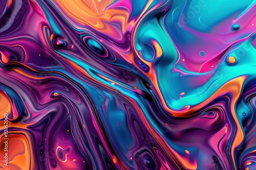 Close-up of multi-colored paint swirling with bubbles. Beautiful simple AI generated image