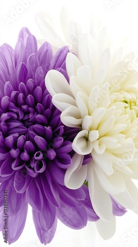 Close-up of Purple and White Chrysanthemums Symbolizing Duality and Harmony