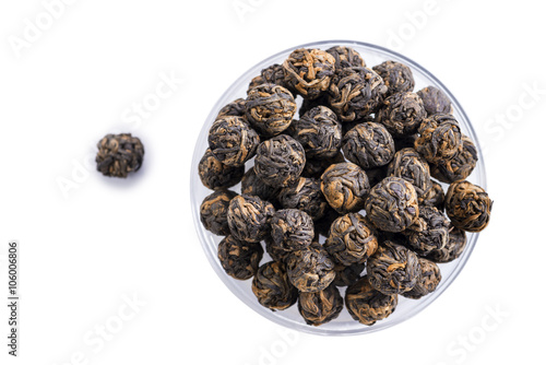 close-up of Tea black dragon pearl tea, isolated on white backgr