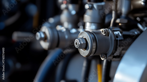 Close-up on precision-engineered metal components. Intricate valves and fasteners showcase mechanical design, highlighting meticulous attention to detail and robustness.