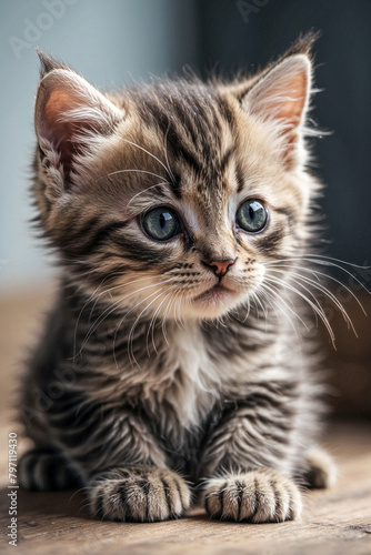 Close-Up Photo of an Adorable Kitten: A Perfect Wall Art Picture Capturing the Cuteness of Kittens.