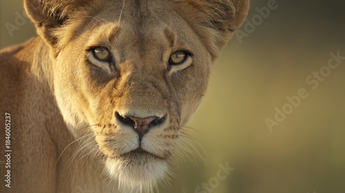 Close-up portrait of a lioness with an intense gaze, bathed in golden savanna sunlight. wildlife magazines, conservation campaigns, designed for nature documentaries and education.