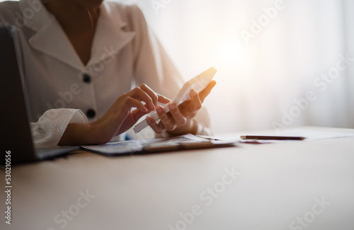 Close-up shot of a beautiful young businesswoman working on a calculator and laptop in the office. accountant work concept