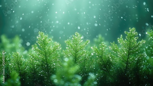 Close-up shot of a bunch of trees in the rain, perfect for nature and weather related images