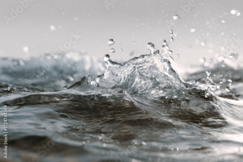 Closeup view of calm clear water with gentle splashes at dawn reflecting soft light and creating a serene atmosphere in nature