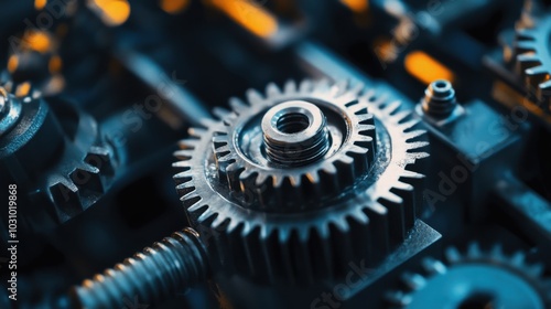 Close-up view of intricate mechanical gears, highlighting concepts of engineering and machine operation