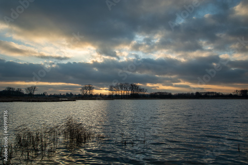lake, cloud, sunset, sky, nature, water, landscape, dawn, sun, over, reed, blue, scene, evening, light, sunlight, background, tree, colours, park, day, cold, outdoors, colourful, dusk, romantic, travel, horizon, duck pond, silhouette, tranquil, twilight, silence