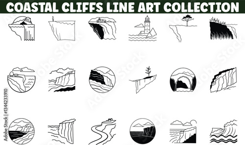 Coastal Cliffs Line Art Collection Minimalist Nature Illustrations