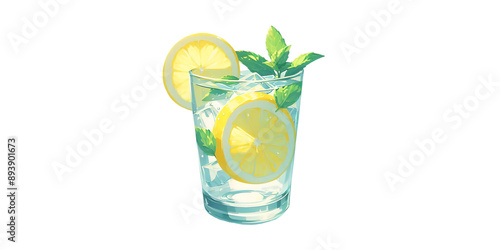 drink, glasses, cocktail, lemon, water, ice, cold, isolated, lime, alcohol, beverage, fruit, lemonade, white, juice, mint, green, citrous, mojito, refreshment, fresh, soda, cool, liquid, slice