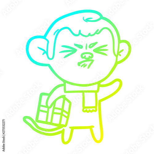 cold gradient line drawing cartoon annoyed monkey