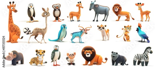 Collection of Bright Cartoon Baby Animals on a Plain White Backdrop