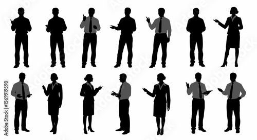 Collection of Business People Silhouettes Diverse Poses for Presentations, Meetings, and Corporate Designs