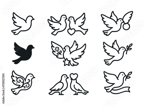 dove, line, art, collection, illustration, symbol, peace, love, bird, outline, simple, graphic, flying, floral, heart, star, olive, tree branch, romance, elegant, nature, vignetting, monochrome, flight, minimalist, design, black, white, harmony, purity, freedom, silhouette, graceful, decoration, serene, tranquil, contour, wing, abstract, decorative, pair, marriage, oneness, delicate, cartoon, ornament, spiritual, inspirational, symbolic