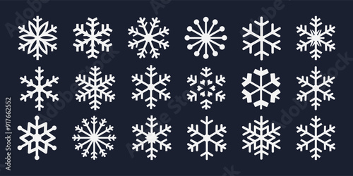 Collection of Elegant Vector Snowflake Set on Dark Background - Perfect for Christmas Elements Design