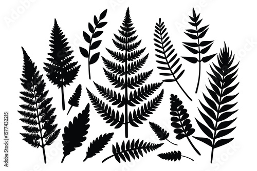 Collection of Fern Silhouettes Black and White Botanical Illustrations